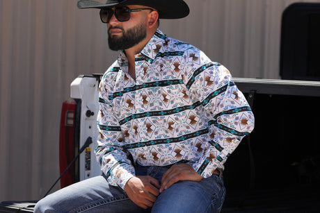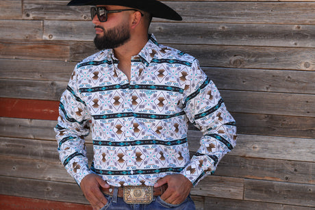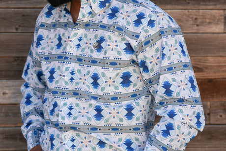 Blue Feather Aztec Slim Fit Button Up - SKCL2023153 153