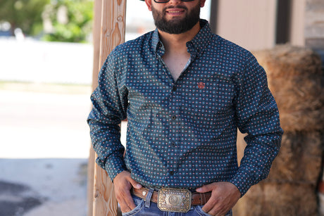 Blue & Salmon Geometric Button Up SKCL2023169 169