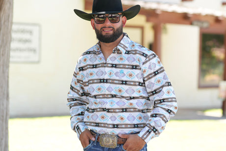 Brown & Blue Aztec Stripe Button Up SKCL2023172 172