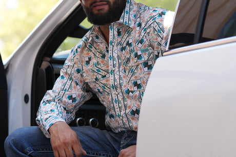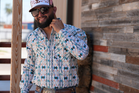 Teal & White Aztec Stripe Pearl Snap SKCL2023152 152
